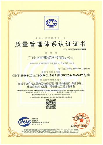 質(zhì)量管理體系認(rèn)證證書